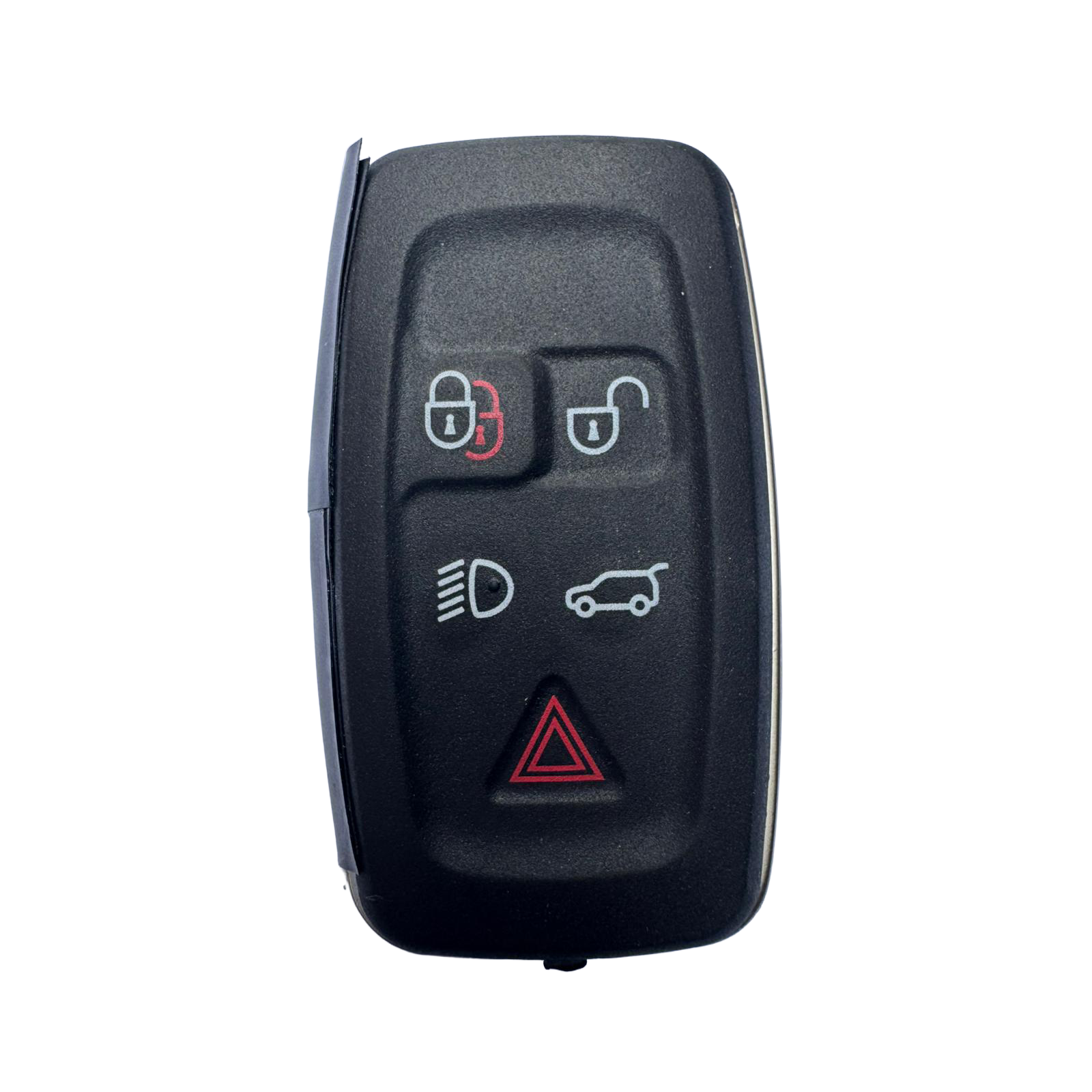 Aftermarket Land Rover smart remote key supplied with an ID47 / ID49 PCF7953 transponder chip. This smart remote operates on a 433MHz frequency and features five buttons for Lock, Unlock, Boot release, Headlights and Panic functions.