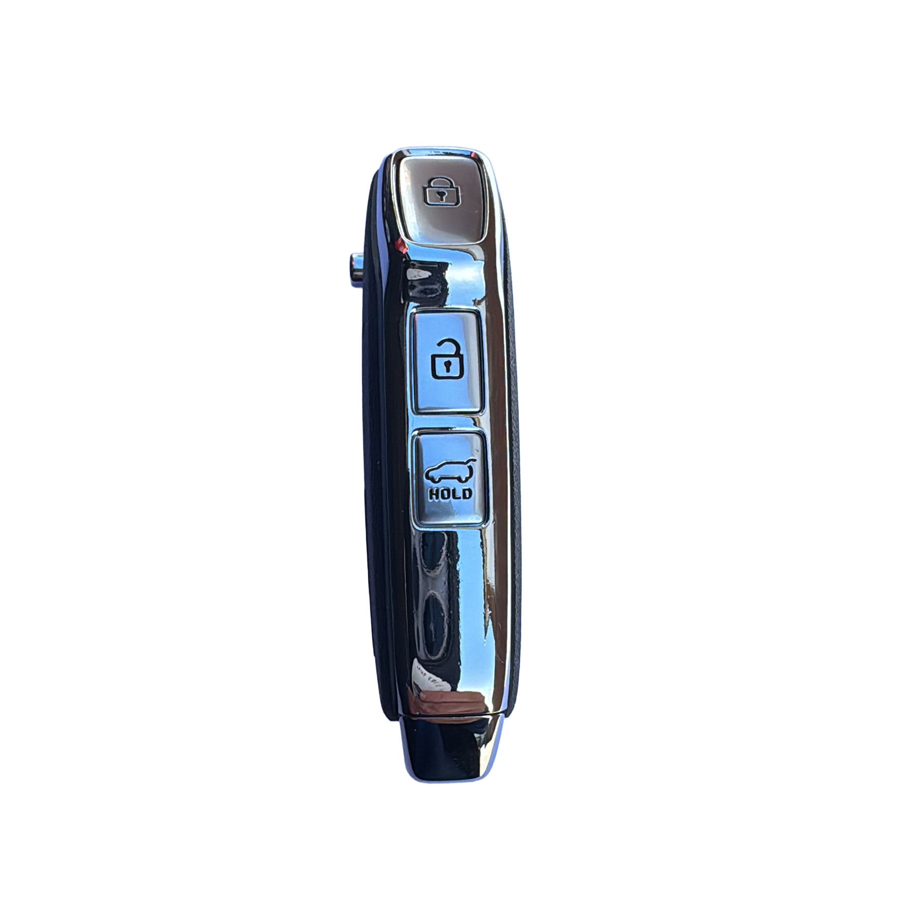 Genuine OEM Kia flip remote key supplied with an ID75 transponder chip. This remote operates on a 433MHz frequency and features three buttons for Lock, Unlock and Boot release.