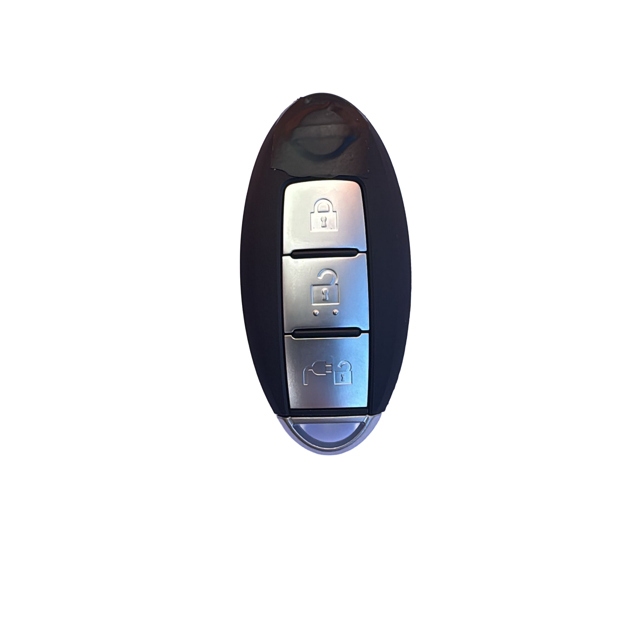 Genuine OEM Nissan intelligent proximity remote supplied with a PCF7952 ID46 transponder chip. This smart remote operates on a 433MHz frequency and features three buttons for Lock, Unlock and Plug Cover functions.